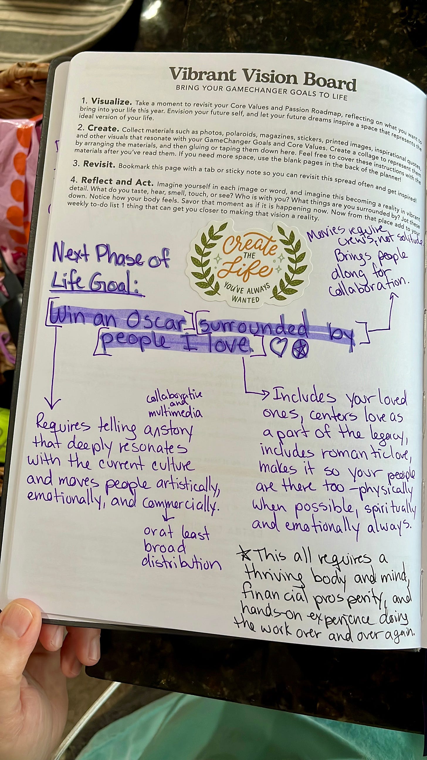 Here’s an example of my professional one, all of them aligned with actions it takes to get to my North Star by 45 and helping my win an Oscar surrounded by people I love: