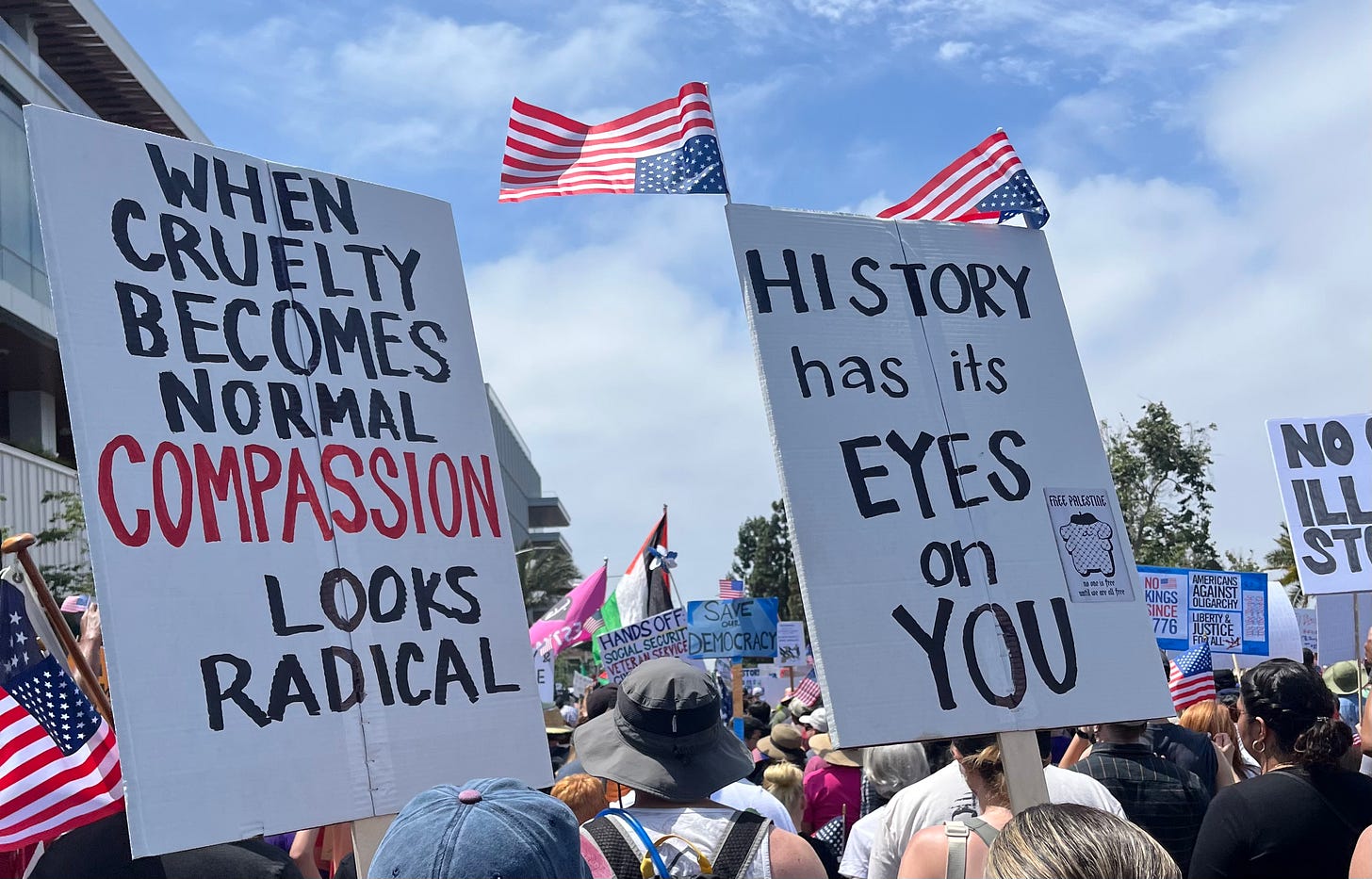 At eighteen, I showed up to my very first anti-war march with a handwritten “God Bless the USA” sign. I still cringe thinking about it, not realizing my mistake until the organizers of the march got on a soap box with a bullhorn talking about religious conservatives trying to infiltrate their protest while looking straight at me.